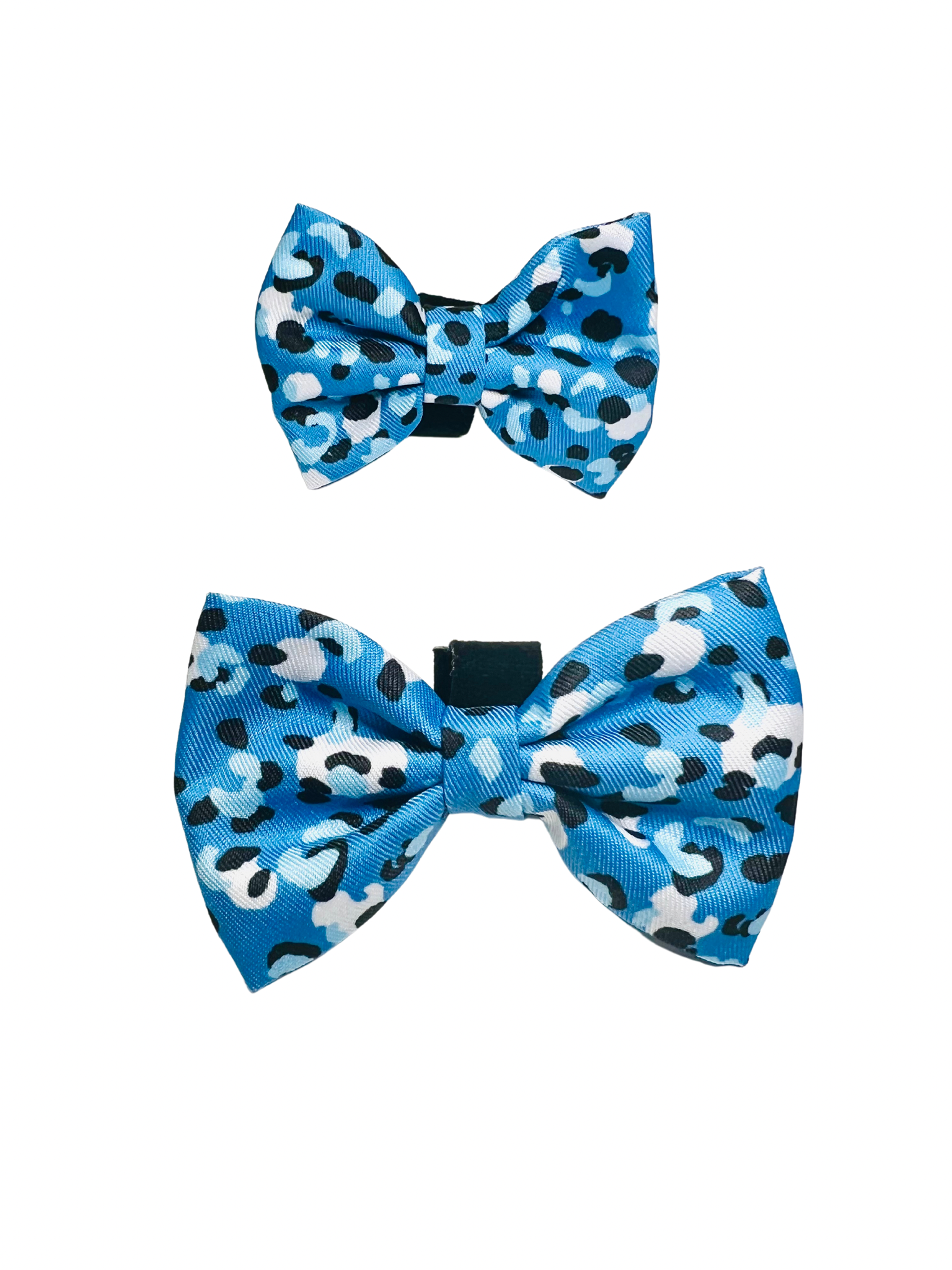 Pup Squad bow ties are made from a thick silky weave that holds its shape and allows our prints to pop! Simply thread onto to any Pup Squad collar via the back soft velcro loop and your pup will be looking dapper in 5 seconds flat!